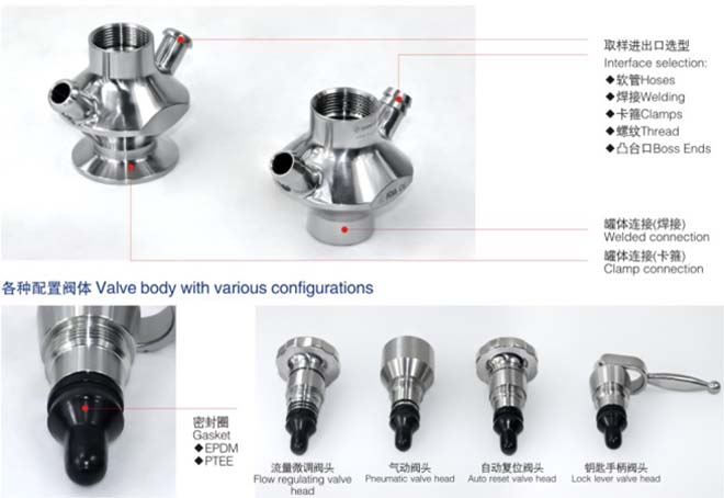 全新設(shè)計理念無菌取樣閥,滿足更高要求,美國3-A-64-00衛(wèi)生認(rèn)證,支持自動復(fù)位,鑰匙手柄,微調(diào)手輪,氣動,它們之前都可以相互更換。