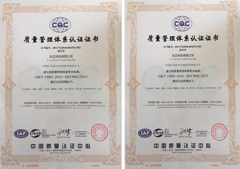 由中國質(zhì)量認證中心 CQC 實施的 ISO9001 質(zhì)量管理體系,且獲得通過;